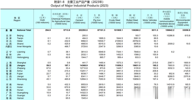 首先江苏传统制造业规模很庞大,统计年鉴显示,江苏的布匹、水泥、生铁、粗钢、钢材等传统大宗商品的产能都是全国第一,客流量和人次也是全国第一,这个可以表明经济的繁荣程度。