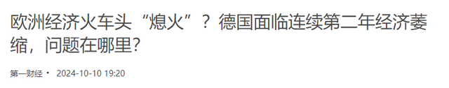 原文记载于第一财经2024.10.10关于:欧洲经济火车头“熄火”?德国面临连续第二年经济萎缩,问题在哪里?