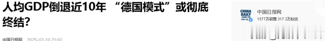原文记载于中国日报网2025.2.10关于:人均GDP倒退近10年“德国模式”或彻底终结?